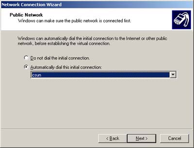 If you want Windows to automatically dial up your ISP whenever you open a VPN connection, tick Automatically dial this initial connection and select the ISP you want to call. If you are already connected to the internet, select Do not dial the initial connection. Click on Next.