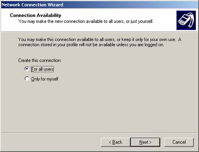 If you want this VPN connection to be available to all users, select For all users and click on Next. Otherwise, select Only for myself and click Next.